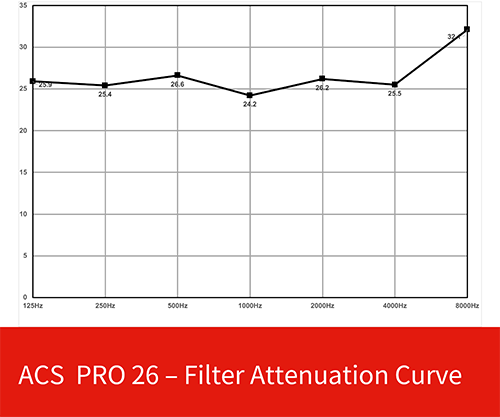 The chart below shows the attenuation curve of PRO 26. The next chart shows the safe-listening-time of different PRO model filters under different ambient sound pressures. If the PRO 26 doesn't give you enough safe listening time at your ambient sound pressure,  you must reduce the time you spend in such loud environments because it will destroy your hearing, and your music career will have a sudden end.