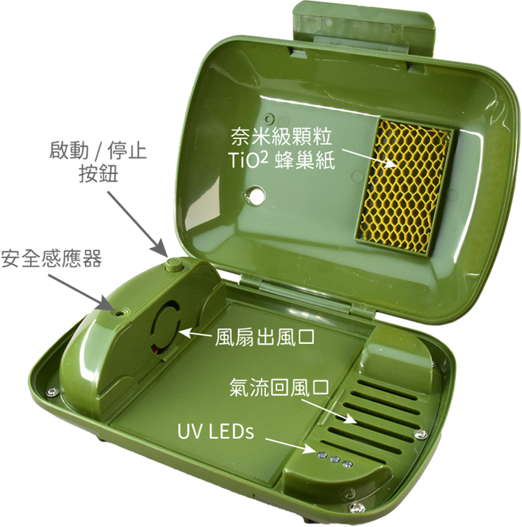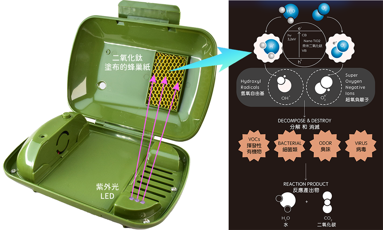 4. 380nm UV 和奈米顆粒二氧化鈦所產生的高效光觸媒反應,提供強勁的消毒清潔效率。