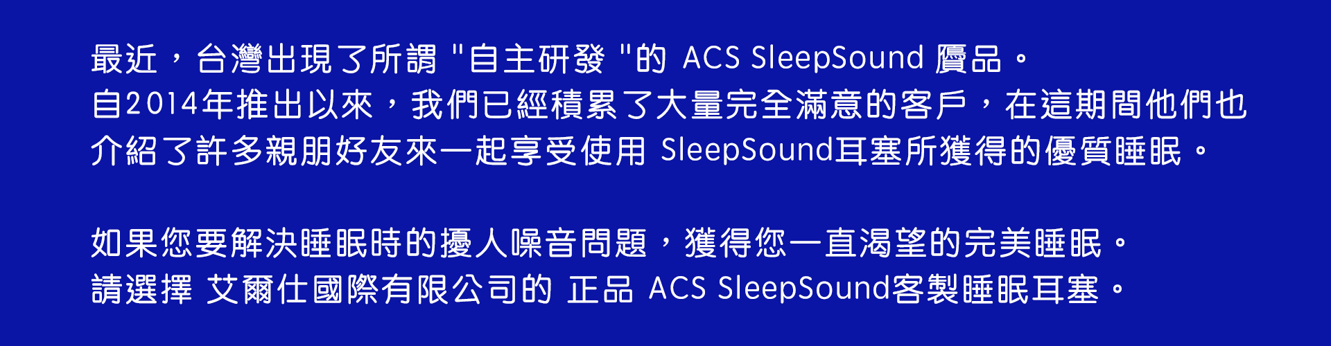 訂購您專屬的 ACS SleepSound客製睡眠耳塞,請點擊下面圖片!
