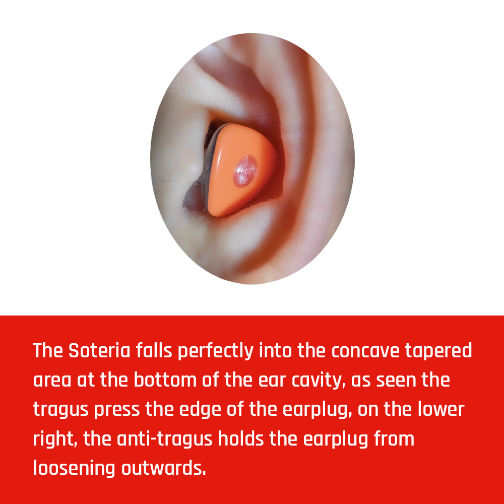 ACS has produced hundreds of thousands of custom earplugs over the past 25 years. We understand that there are big differences in the ear canal's diameter and significant differences in its length. You can imagine how challenging a standard single 2 or 3-ring earplug to satisfy the need for comfort and seal in the ear canal in the image below.  We designed the Soteria's with an unusual shape, combined with five different ear tips to fit a wider variety of ear canals.
