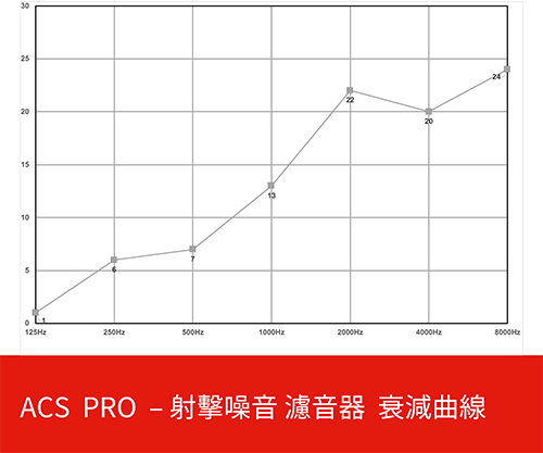 PRO 射擊噪音客製耳塞是專門為處理槍砲射擊噪音而設計的。在正常情況下,它能提供15dB的噪音衰減。當遇到射擊等爆炸性脈衝噪聲時,它將瞬間提供最大33.1dB ANSI IPIL認證的脈衝噪音保護。