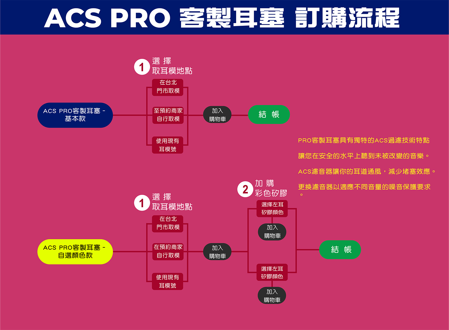 若需彩色矽膠或雷射雕刻等個性化選項,請依照 PRO 客製耳塞的訂購流程,於「個性化選項」中加購。